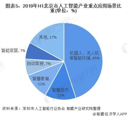 作为人工智能城市的先驱者——北京,在人工智能应用层研发优势明显,软件平台、无人驾驶等领域研究领跑全国。近年来,越来越多的人工智能技术也应用于北京市的多个场景,如云端平台定位检测病灶、智能摄像识别违法行为、市域快轨提前引导分流等。北京人工智能企业也重点聚焦在机器人、无人机等智能终端产品,占比达到45%;智慧医疗和智慧教育企业数量占比超过10%;自动驾驶和智能家居等垂直应用领域也有所涉及。