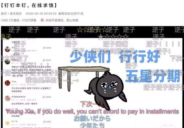 来自小学生的猛烈炮火也让钉钉收获了成吨的伤害,于是在2月16日钉钉官方在B站上发布了【 钉 钉 本 钉 ,在 线 求 饶 】的视频,被逼得在线喊爸爸,只 求 少 侠 们 ,五 星 一 次 付 清 Q A Q。目前该视频播放量达到1198.8万词,收获15.7万弹幕,最高全站日排名第一。