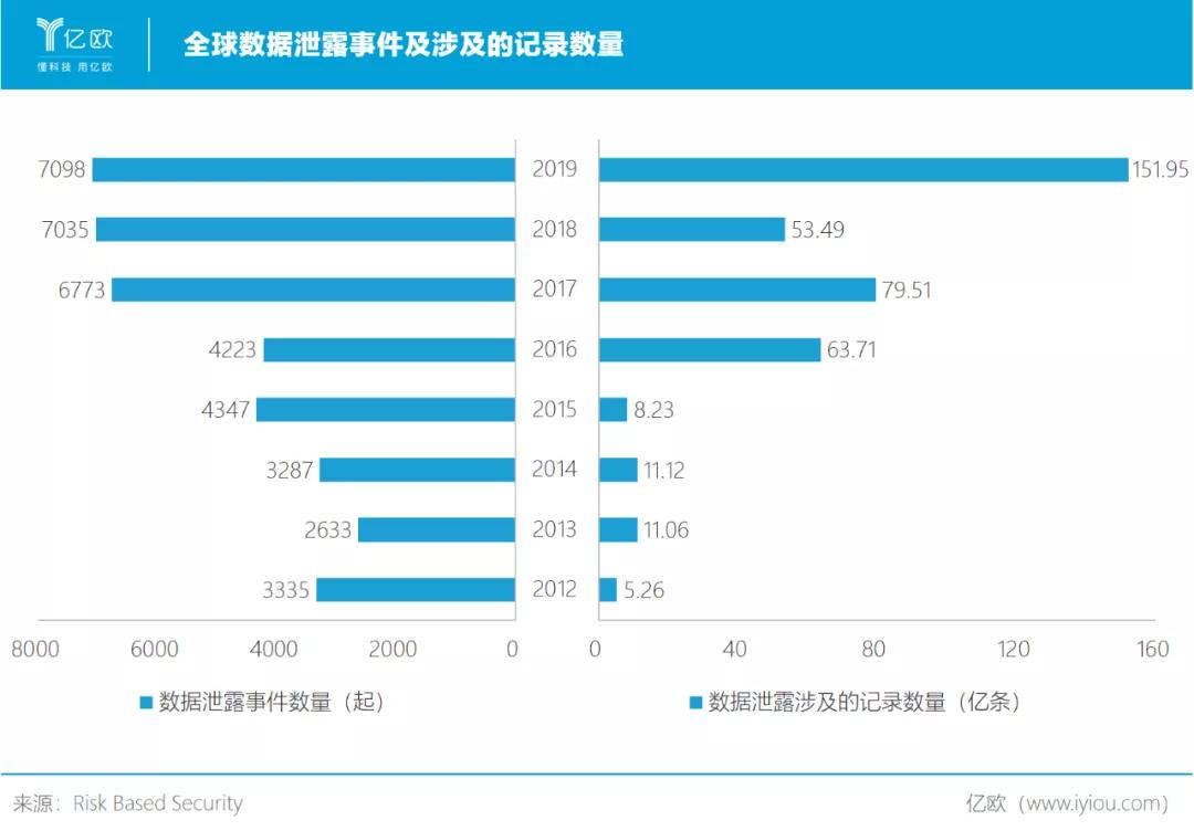 数据泄露已不是偶然。Risk Based Security数据显示,2019年全球共发生7098起数据泄露事件,涉及数据记录数量151.95亿条。