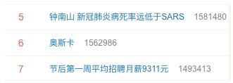 话题中说,某人力机构10日发布的调研报告显示,新冠肺炎疫情并没有影响招聘薪酬的涨势,节后复工第一周全国38个核心城市的平均招聘薪酬为9311元/月,比去年同期(8311元/月)提高14.52%。金融业招聘薪酬依然领先,基金/证券/期货/投资行业的平均招聘薪酬高达14428元/月,且同比增速超过30%。