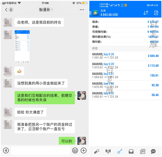 这个账户是灵雁的一个学员,再添加我之前,做了几十个平台,亏损了多少也不提了,也不再少数。大家都知道投资市场上有一个指导标准,要么入金5000美金,要么入金10000美金,看似不多,但这边亏一点,那么损一些,到最后就是一笔大资金了。这个学员也一样,他给我看的交易历史记录惨不忍睹,他对这个市场也是心有不甘,但频频受挫。鉴于他的情况,我没有给入金门槛,让客户随心,小资金跟上中长线盈利交易。客户最终决定入金700美金,刚开始也是0.01手的交易,后续通过不断的交易积累,目前总盈利约7300美金,相信关注过灵雁的客户都有所了解!