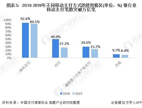 我国移动支付主要包括二维码支付、闪付、跳转第三方客户端支付等,扫码支付是我国最早推行的移动支付方式,目前无论是在日常购买商品还是在乘坐交通工具等日常消费场景中,国人均可使用扫码支付,因此其市场渗透率也较高,在移动支付方式中使用率占比高达92.6%。但近年来,各大商家也纷纷推广比扫码支付更为方便快捷的“闪付方式”,2019年闪付方式的使用率较上年有了明显的提高,从2018年的27.2%上升到2019年的49.9%。