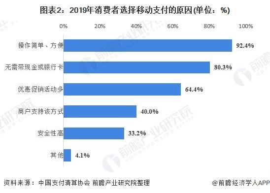 在移动互联网时代的今天,移动支付具有支付方便快捷、高度融合性、环保与卫生等先天优势,因此移动支付逐渐成为了国人心目中无可替代的支付新宠。在消费者市场调研中,有92.4%的消费者表示选择移动支付的最主要原因是其操作简单且方便;有80.3%的消费者表示使用移动支付是因其无需携带现金或银行卡。当然,商家的支持与促销活动也推动了我国移动支付的使用率,有64.4%的消费者选择移动支付方式是因其优惠促销活动多。
