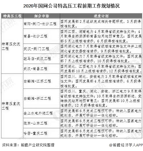 根据国网公司的规划,2020年5交5直特高压电网项目前期工作计划具体如下: