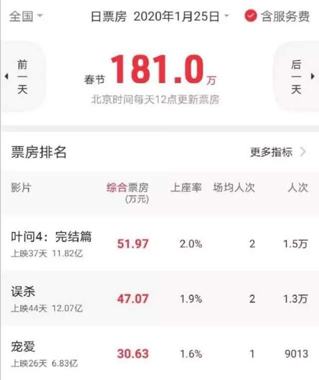 大年初一,受到疫情的影响,多部贺岁档大片撤档,全国总票房只有181万。