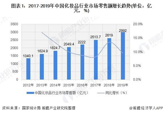 一、2019年中国化妆品行业市场零售额达2992亿元