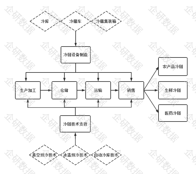 冷链物流是指易腐食品或商品在生产、加工、储存、再加工、运输及销售等各个环节都处在规定的温度内,以保证食品或者商品的质量。它主要以冷冻工艺为基础、制冷技术为手段,贯穿在原料供应商到终端消费者整个链条当中。
