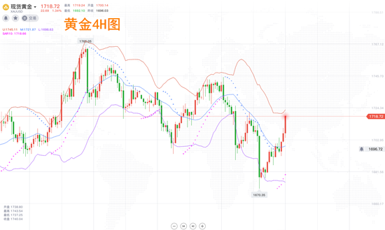强势拉升走势,美盘还是继续低多不变,上方重点关注1720,突破后还可以顺势加仓!