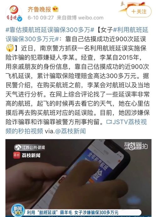 新闻中的李某,曾经从事过航空服务类工作,所以对于整个航班延误保险理赔流程很清楚,而且她对于哪些航班延误有自己一套分析和推测的方法。