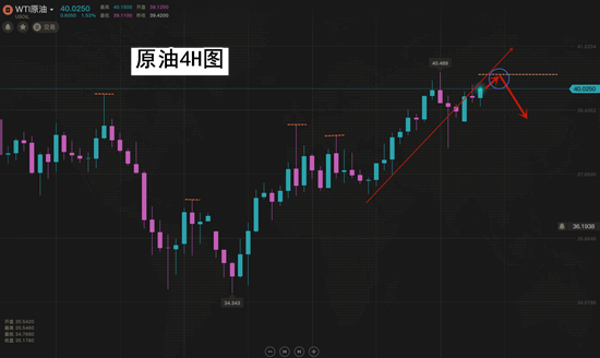 再来关注一下油市消息面。从盘面上看4小时图中形成三顶,最终行情也迎来了下跌,我们还是继续关注40.5-41区域压制,若今日守住不突破那么看调整不变,虽近日有走高迹象,但始终未破前高,反而逐步形成三顶压制,所以当下的行情只能算是震荡偏多姿态,并未到我们直接追多的时机。当心再次出现调整回撤!