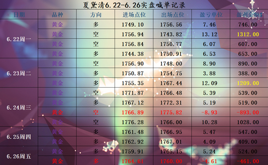 【夏黛清:本周实盘学员交易总结】
