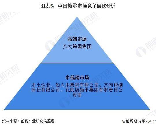 从竞争层次来看,我国轴承制造高端市场主要由上述所陈述的八大跨国轴承集团占领。我国本土企业主要占据中低端市场,代表性企业有人本集团有限公司、万向钱潮股份有限公司、瓦房店轴承集团有限责任公司等。不过,随着本土轴承制造企业提高制造技术,部分大型本土企业已经能够生产高端产品,如瓦轴集团生产的大型电动轮自卸车配套轴承,成功替代进口产品。