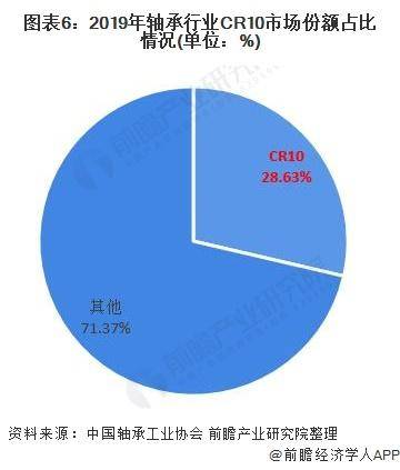 我国轴承制造行业属于完全竞争市场,企业数量众多,行业市场集中度不高。根据中国轴承工业协会数据显示,2019年我国轴承行业实现营业收入1770亿元,其中排名前十的轴承制造企业实现营业收入506.7亿元,占比约为28.63%。