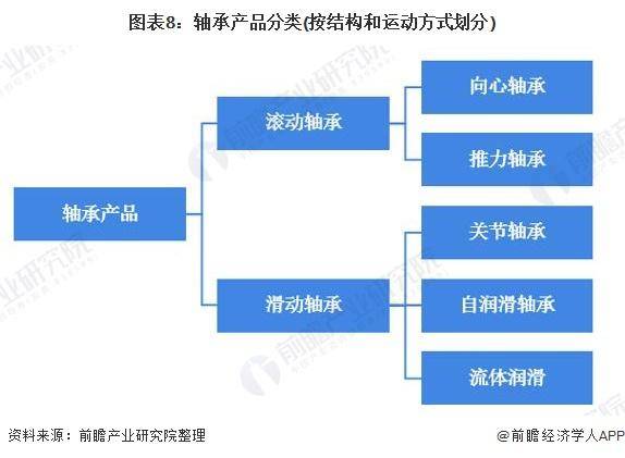 从产品竞争来看,如果按照轴承产品的结构和运动方式来划分,轴承产品可分为滚动轴承和滑动轴承。滚动轴承具有传动效率高、机械性能好等优势,是目前轴承行业中的主导种类。