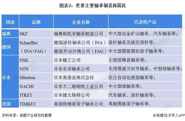 全球轴承行业经过多年产业竞争后,目前已经形成了垄断竞争的格局,由瑞典、德国、日本、美国四个国家的八大跨国集团瓜分市场,包括瑞典企业SKF、德国企业Schaeffler(INA+FAG)、日本企业NSK、NTN、Minebea、NACHI、JTKET和美国企业TIMKET。这八大企业占据了全球70%以上的市场份额。