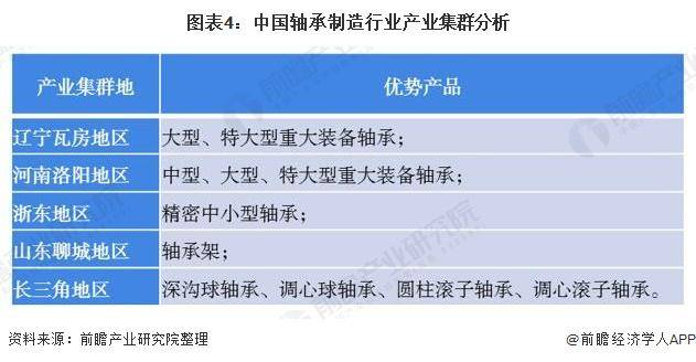 从区域竞争来看,我国轴承行业已经形成了产业集群,包括辽宁瓦房地区、河南洛阳地区、浙东地区、山东聊城地区和长三角地区,每个地区产业集群都各有特色,如辽宁瓦房地区的优势产品为重大装备类轴承、浙东地区则擅长精密中小型轴承。