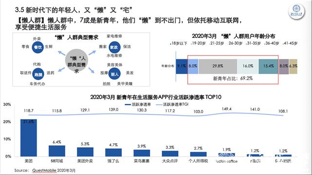 从观察案例来看,新青年群体会既“懒”又“宅”,“宅”到自成文化派系。疫情之前,相对丰富的物质条件、便捷高效的互联网环境、追求简单快捷的个性等因素,强化了新青年本来固有的“懒”与“宅”属性。懒人式消费备受新青年青睐,懒人群中,七成以上是新青年,他们“懒”到不出门,无论是时尚潮流产品还是日益喜爱网购的生鲜农产品,都是选择不出门到家类服务。后疫情时代,随着居家办公“宅生活”方式成为主流,新青年会继续引领“宅人经济”时代消费之风。