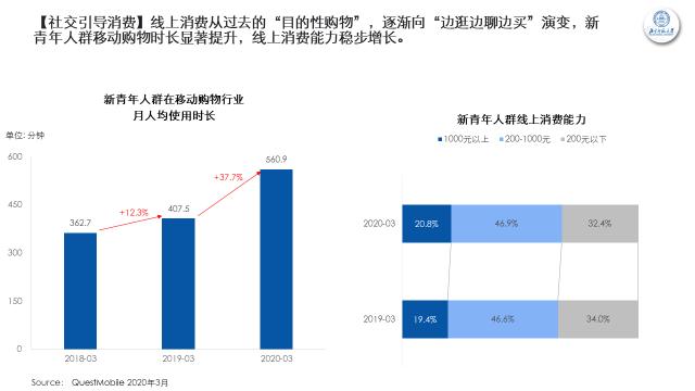 再次,阶段性消费愿望提振,“云”消费场景重塑消费方式。值得指出的是,疫情之后,线上消费市场经历冲击、恢复,并将回归新常态。“扩大消费是对冲疫情影响的重要着力点之一。”新青年新技术为新消费方式、新产业链的衍生提供了新的渠道和空间。一方面,疫情之后会面临消费大潮,消费者长期居家被抑制的消费愿望提振,其消费心理、消费趋势往性价比方向发展。疫情期间,新青年新品类的消费决策出现,如卫生防护品类的消费,如口罩、消毒液等;以及个人健康类如烘焙用具、健康饮食、运动健身用品等,而且性价比高的品牌,将会成为新青年消费的重点。“火锅”“奶茶”等美食类的“小确幸”消费成为了疫情期间居家的心理补偿。疫情期间,很多品牌都收获了新代际消费者的兴趣度,新青年消费的复苏,也是品牌重塑自身价值的机遇。另一方面,基于供应链优化,新的“云消费”场景的构建,疫情期间,线下主导的消费模式也在积极探索线上购买方案,如云看房,云购车等;“云生活”方式收到青睐,如云健身、云派对等。另外,由于隔离措施和新青年“宅”属性无意识的契合,成熟的多元化零售模式,如盒马、京东超市等电商配送平台,美团、饿了么等第三方配送,以及智能货架等无人零售模式的兴起,移动基础设施的完备,供应链的逐步成熟,共享实施方式与资源重组,很可能将会重塑很长一段时间的新青年消费者的生活方式和消费方式。
