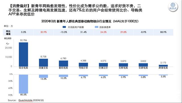 新青年用户规模超6.5亿,是互联网的原住民和核心群体,也是成长于中国经济腾飞时期的一代,他们消费心理和消费行为都比父辈要超前。再加上这代年轻人有强烈的独立意识和生活享受意识,挣钱不多但消费不将就,精打细算、追求性价比式的消费成为其主流消费理念。