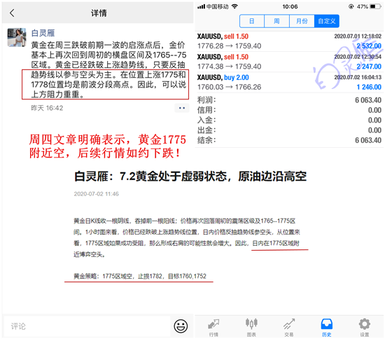 周四灵雁多次提醒,黄金1775附近空,行情后续如期回撤。虽然有数据,但是行情大体走的是技术面,看准了方向,后续完美盈下非农利润!