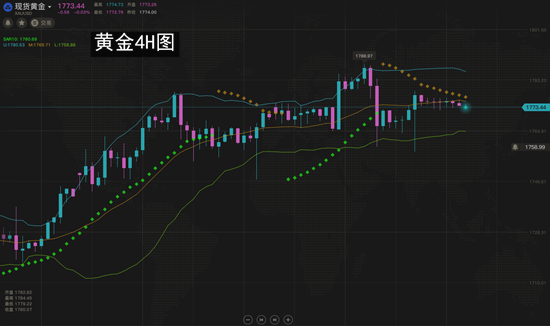 4小时来看,短期走势近期上升表现较为明显,金价自上周内继续横盘拉升后上周五再次美盘上演过山车走势且一度跌穿上周上涨起点,或令多头后市短线上行顾虑重重。综合来看,操作上夏黛清看好黄金跌破1765下行趋势线支撑,进一步看到1760。上方阻力关注1780-1785一线。