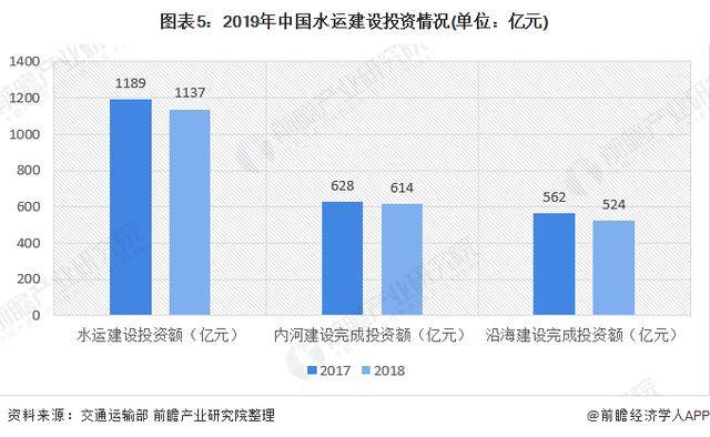 2019年全年完成水运建设投资1137亿元,主要分为内河建设和沿海建设
