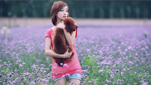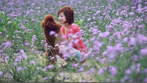 那只狗狗好可爱,好像是她的爱宠呢,叫拉菲。
