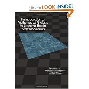 Product Description Providing an introduction to mathematical analysis as it applies to economic theory and econometrics, this book bridges the gap that has separated the teaching of basic mathematics for economics and the increasingly advanced mathematics demanded in economics research today. Dean Corbae, Maxwell B. Stinchcombe, and Juraj Zeman equip students with the knowledge of real and functional analysis and measure theory they need to read and do research in economic and econometric theory.