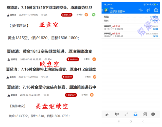 没有不赚钱的投资,只有不成功的做单!是否赚钱在于买涨买跌时机的把握,赚钱靠机会,投资靠智慧,理财靠专业。夏黛清专注分析现货黄金、美原油、外汇黄金原油等金融理财投资产品。专业团队在线分析,一对一即时指导,为投资者规避风险,扩大利润,让各位随时随地第一时间知道国际市场动向,做最稳健的单子。