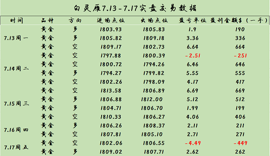 【白灵雁:实盘学员上周交易总结】