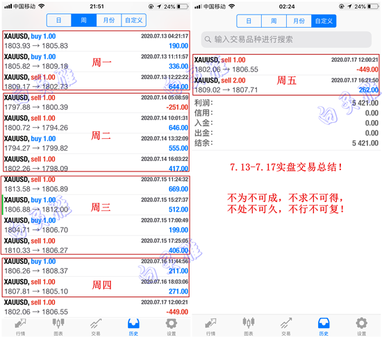 周一亚盘提示黄金1800附近多,欧盘提示1808空,多空均双向获利。行情的交易不在于繁,而在于看准的区间以及点位,灵雁做单可以吃鱼头,喜欢吃鱼身,但是不爱吃鱼尾;