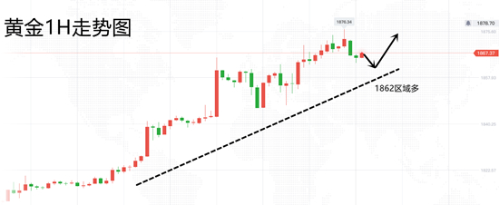 黄金策略:1862区域多,止损1855,目标1875,1883