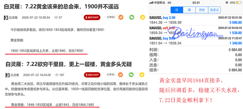 昨天的行情能不能做好,就看投资者是追单交易,还是耐心等待回撤去做多。昨日早间的急速拉伸,明显均线指标已经跟不上,脱离了轨道,那么技术面肯定存在回撤(可参考历史行情,行情不会一摸一样,但会惊人的相似),祝大家周四交易顺利!