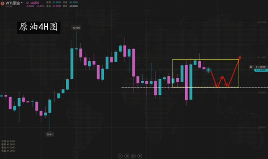原油近日和预期的一样,持续震荡调整之中,不过目前行情依旧在上涨通道之中,昨日晚间在回撤至40.5一线后获得支撑快速反弹,这里也正好是上涨通道下轨的支撑位,我们昨晚也是在40.5-8一线布局多单的,行情和我们想象的一样,目前油价再次反弹到41.5一线,上方高点压力为42.5一线高点。所以今日操作上,建议空仓者可在41美元一线布局多单,目标看42-42.5一线,破位再继续看上升通道上沿43一线压力。