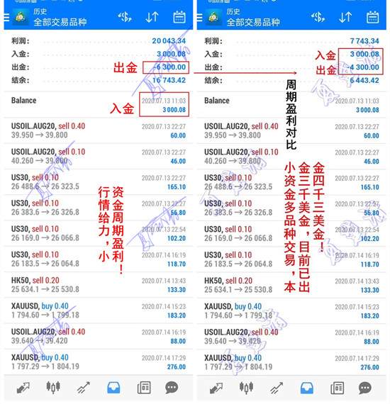 我相信亏损太多的朋友都会对这个市场有顾虑。做投资,你不要一千美金和一万美金的账户盈利额对比,而应该对比盈利比例。我相信在合作的过程中不是一蹴而就,而是细水长流。