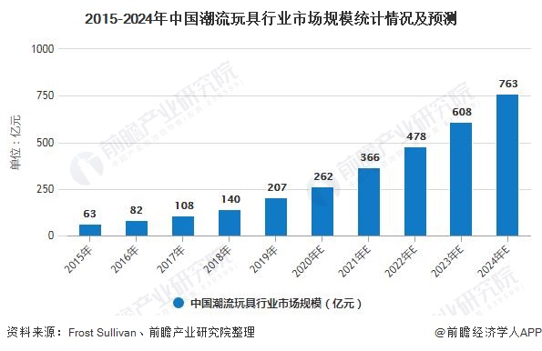目前,中国的潮流玩具市场仍处于早起阶段,并在过去数年见证了快速增长。根据弗若斯特沙利文数据显示,中国潮流玩具零售的市场规模由2015年的63亿人民币增长到2019年的207亿人民币,年复合增长率高达34.6%。受中国潮流玩具的受欢迎程度不断上升所推动,潮流玩具零售市场规模到2024年预计将达到763亿元。