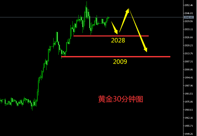所以今天亚欧盘大概思路也就出来了,下行不破2028低点做多,看2055高点位置,不破反手做空看震荡。若下行破位2028可以继续看一波回落,看到2020-2009位置。