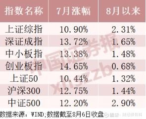 关联统计数据显示,只管A股环境趋势在7月下半月蒙受了一轮显著回调,但主要股指当月涨幅依旧可观。8月以来,中证500指数的阐扬非常为突出,领涨A股主要指数。