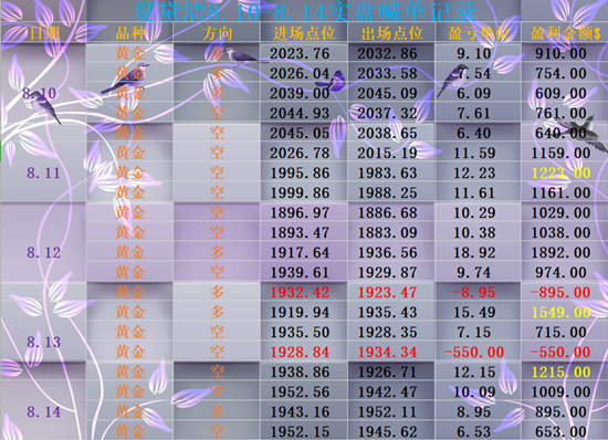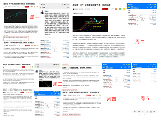 周一打破了多头上涨的局势,周二的多单力度比较弱。黛清通知客户2026进空,在2015出局,后续当行情跌破2000后,黛清又通知客户在2000,1995分别进场空单,盈利后不恋战;