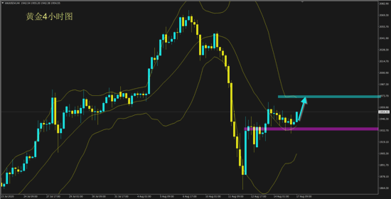 黄金当前依然是反弹震荡走势,短线维持1930-1965区域内震荡,今日亚盘快速下跌一波,在1930位置获得支撑反弹,此位置是4小时布林中轨支撑位置,如果站稳必然再次反弹上涨至布林上轨1980一线。而黄金短线的压力就是1955位置,突破后必然再次大涨。