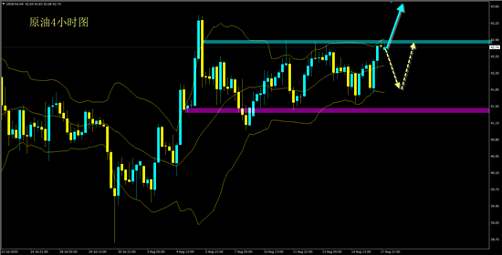 原油依然是震荡偏多的形态,我也已经说过,本周原油非常重要,随时面临变盘,而现在行情短线维持在41.5-43区域内震荡。偏多的走势,如果今日能直接突破43的压力,那么原油将会继续上行,最终上涨目标是上方50区域的压力。