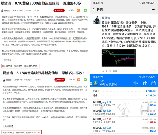 周二的行情可谓是大起大落,亚欧盘黄金如期大涨,多单两单接连获利,行情变动太快,失误在所难免,因为冲高之后,然后在2003位置做回调小空单,后续止损出局,美盘以稳健为主,等到行情急速回撤之后,通知客户又做了一个多单,因为美盘连续再冲高,我是看多不做多,因为高位追多的话面临被套的风险,所以黛清选择行情回撤1986之后进场多单,我不追求单子多,也不追求单子所有的一个交易的量,我追求的是一个稳健,保住本金才是成功的第一步。