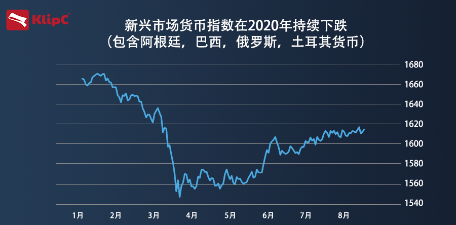 追踪新兴市场货币的MSCI基准指数今年仍下跌3%。自今年年初以来,美元兑巴西货币的汇率已经上涨了近40%,兑兰特和阿根廷比索的汇率上涨了20%,但投资者却导致了美元兑欧元和英镑等主要货币下跌。