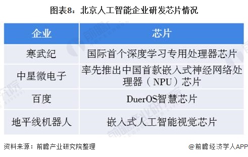京在人工智能芯片上也处于领先地位,其拥有“国际首个深度学习专用处理器芯片”的寒武纪和“率先推出中国首款嵌入式神经网络处理器(NPU)芯片”的中星微电子等人工智能芯片领先企业。