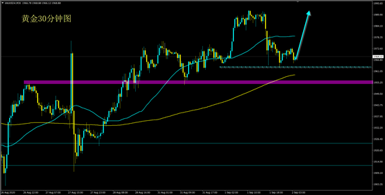 今日晚间小非农重磅来袭,黄金日内关注能否站稳在1960支撑上,站稳的前提下依然继续进场做多。