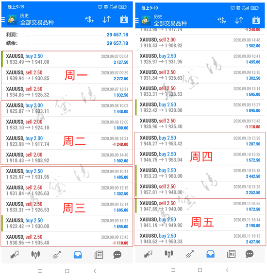 本周交易共单45.5手赚取29657.18美金,约合人民币202,647.51元。祝大家周一愉快!