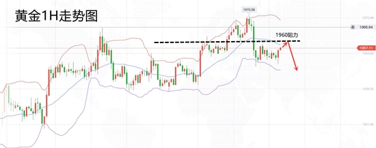 技术层面,日线收阴线,带长上影线,说明市场空头重新夺回最终控制权。4小时级别,K线连续收出4条阴线,市场看空意愿增强。小时先级别,K线下穿布林线中轨,反弹未破中轨,多空转换,空头走强。所以,黄金早盘操作以做空思路为主。