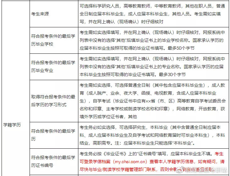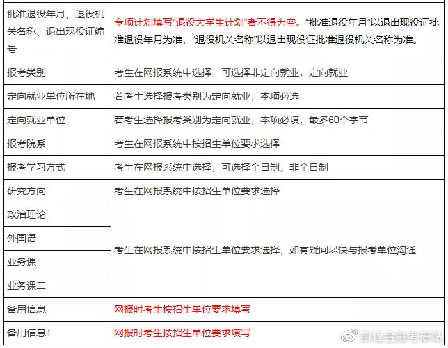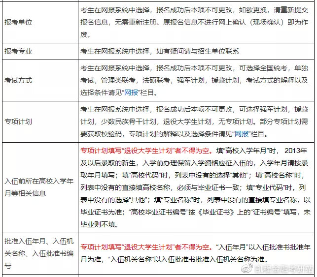 接下来是报考信息的详细填报说明: