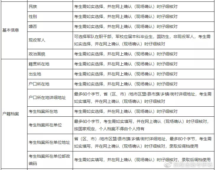 其中,考生信息包括:实名信息、学籍学历、基本信息、户籍档案、家庭主要成员、学习与工作经历、奖惩情况以及联系方式。