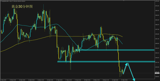 今日美盘顺势继续空,1936附近可以直接进场做空,防守1942,下方目标先看1920位置,破位看跌至1910区域,触及此区域后可以根据支撑力度决定是否反手。